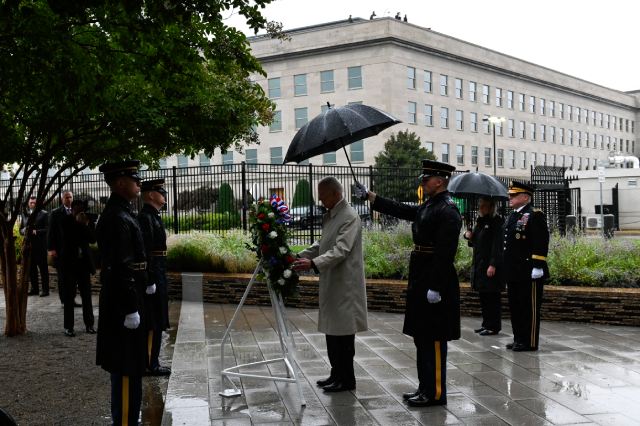 Biden estuvo acompañado por familiares de los caídos, socorristas que habían estado en el Pentágono el día del ataque, así como por líderes del Departamento de Defensa.
