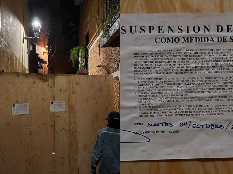 En los muros se observan sellos que la dependencia municipal colocó en señal de la clausura del lugar que indica la suspensión de la obra, por motivos de seguridad.