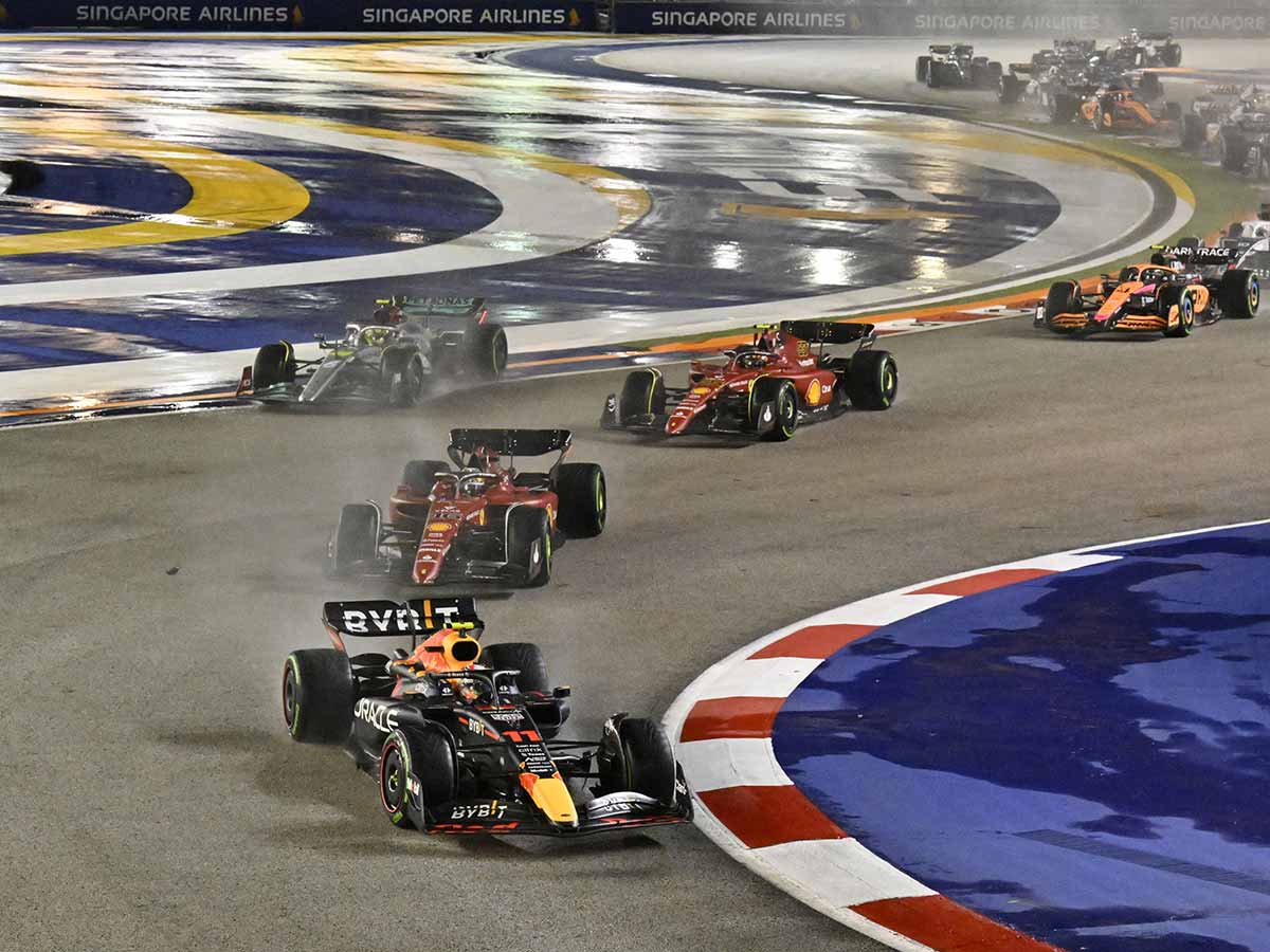 La carrera nocturna fue aplazada poco más de una hora debido a la fuerte tormenta que azotó Singapur, sin embargo, eso no fue un impedimento para el tapatío, quien, desde el arranque, exhibió una de sus mejores versiones en la Fórmula 1, superando a Leclerc para nunca más perder el liderato de la carrera.