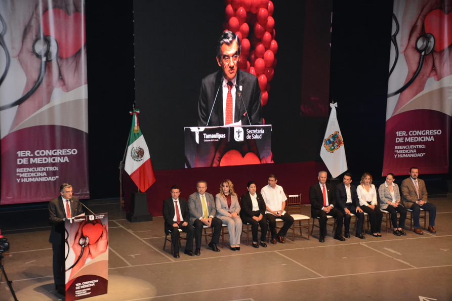 En el congreso de la comunidad médica de Tamaulipas, el gobernador presenció la