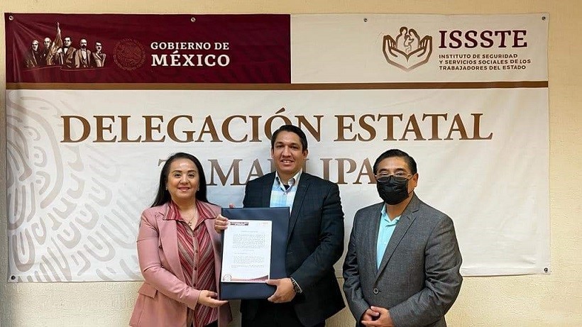 TAMPICO, TAMAULIPAS, 25 DE OCTUBRE DE 2022.- La representación Tamaulipas del Instituto de Seguridad y Servicios Sociales de los Trabajadores del Estado (Issste) y la Universidad del Norte de Tamaulipas llevaron a cabo la firma del convenio en beneficio a los trabajadores del Instituto y a sus familias que decidan elevar su nivel de estudios.