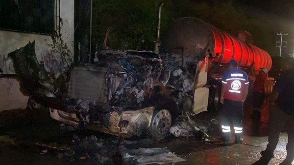 Después de varios minutos, lograron apagar el fuego, pero la cabina de la unidad fue consumida en su totalidad.