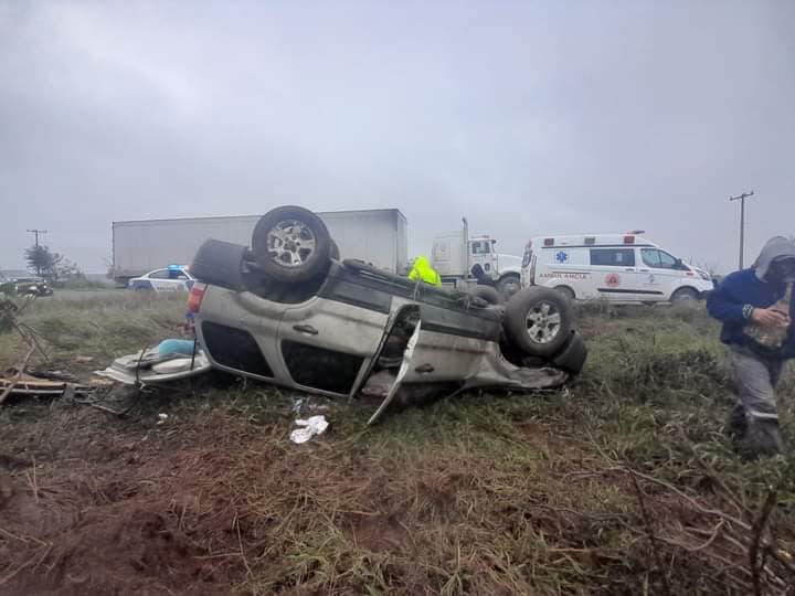 SAN FERNANDO, TAMAULPAS, 19 DE NOVIEMBRE DE 2022.- Cuatro personas lesionadas es el saldo de una volcadura de una camioneta ocurrida la mañana de este sábado en el kilómetro 17 del libramiento de San Fernando, Tamaulipas.
