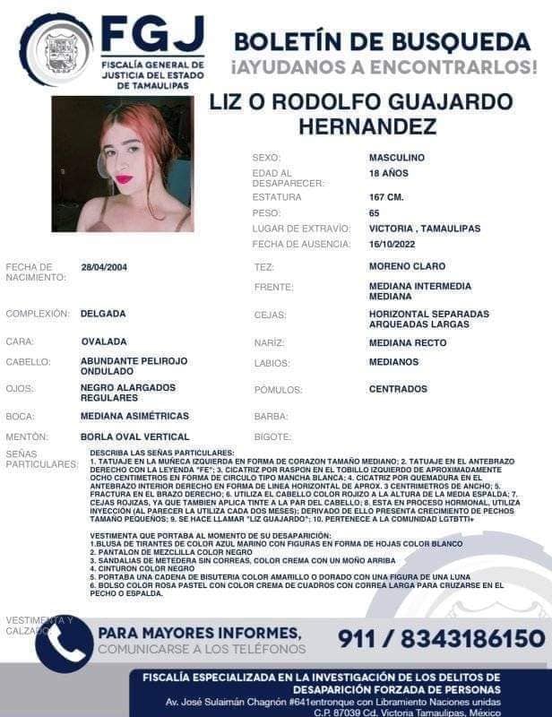podría ser Rodolfo Guajardo Hernández de 18 años conocido como “Liz”.