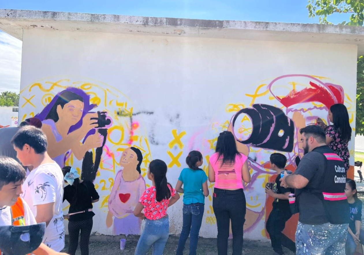 Se pintó un mural, hubo una muestra de danza folklórica y todo concluyó con un recorrido en donde los visitantes admiraban las instalaciones deportivas de la unidad deportiva municipal.