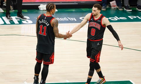 DeRozan, quien sumó 41 tantos el viernes en la derrota ante Orlando, firmó ocho en un lapso de un minuto al final del tercer cuarto. Además, asistió a Alex Caruso, quien con un tiro de bandeja en reversa puso el marcador 116-101 a menos de tres minutos del final.