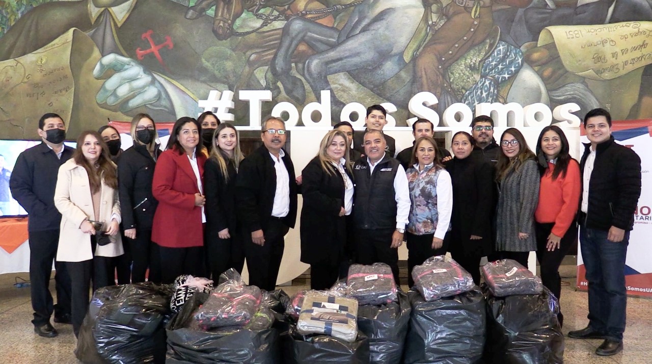 CD. VICTORIA, TAMAULIPAS, 21 DE NOVIEMBRE DE 2022.- Personal de la Universidad Autónoma de Tamaulipas (UAT), perteneciente a las diversas secretarías, direcciones y dependencias de la casa de estudios, llevó a cabo la entrega de donativos recaudados dentro de la Colecta de Cobijas 2022 “Lo que se brinda de corazón se multiplica”, organizada en beneficio de las familias y