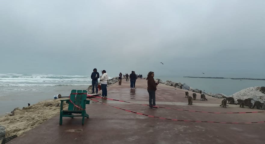 CD. MADERO, TAMAULPAS, 21 DE NOVIEMBRE DE 2022.- Elementos de protección civil con el apoyo de la Guardia Estatal, retiraron el domingo a más de 50 personas del mar, quienes se negaban a retirarse a pesar de fuerte oleaje que se presentaba en el máximo paseo.