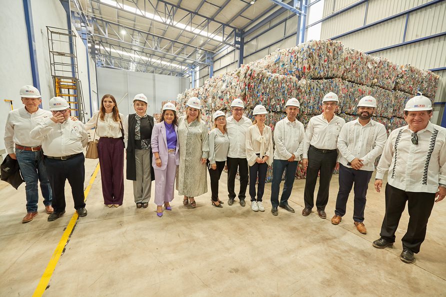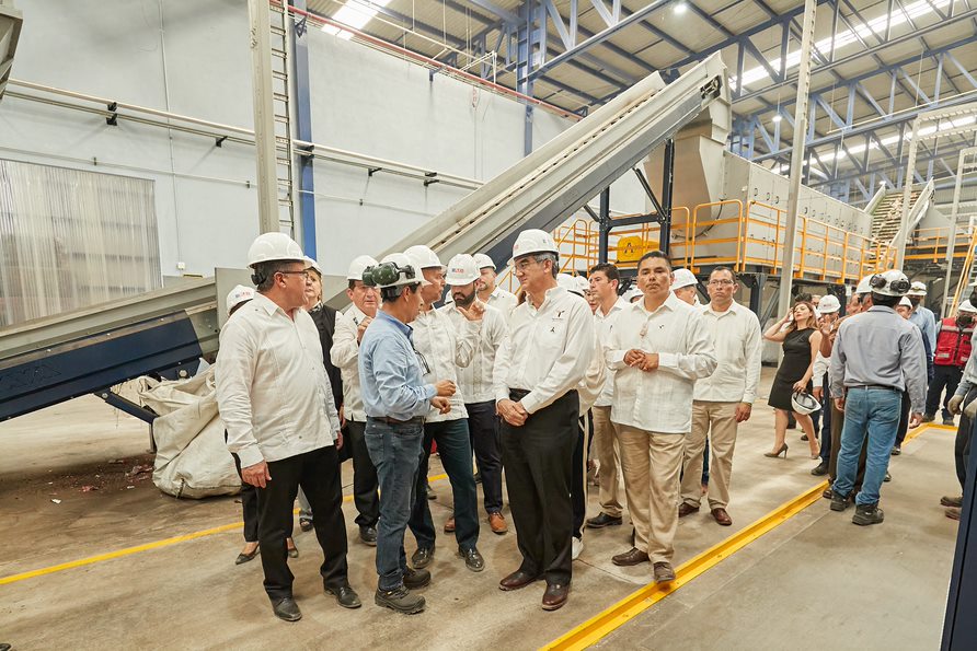 Al inaugurar la planta recicladora de la empresa Flex Américas y poner en marcha