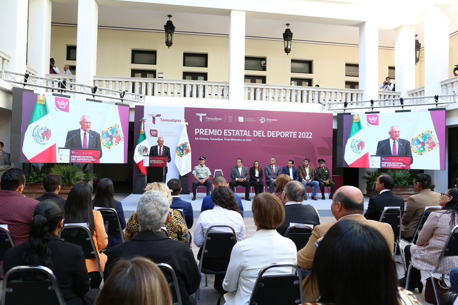 CD. VICTORIA, TAMAULIPAS, 15 DE DICIEMBRE DE 20222.-  Los deportistas de Tamaulipas cuentan con un gobierno amigo y afín a sus deseos de triunfo y superación, afirmó el gobernador Américo Villarreal Anaya, quien confió en que los atletas tamaulipecos seguirán ganando medallas y