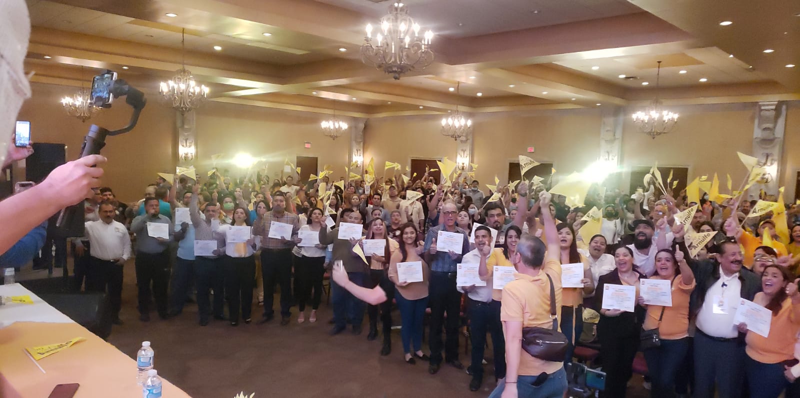 Continuando con su gira por el norte del estado, Arnulfo Rodríguez se reunió con los docentes que abarrotaron el salón del encuentro, y le dijeron Sí al proyecto que representa la planilla amarilla que encabeza.