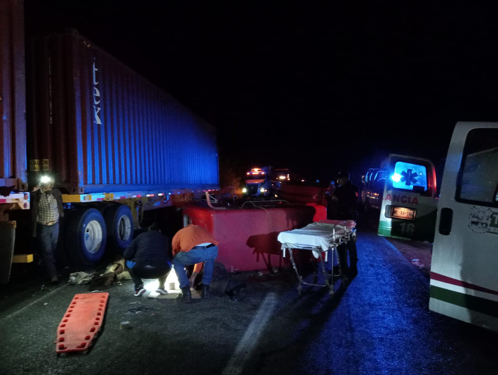 Presuntamente las pesadas unidades circulaban en sentido de sur a norte cuando de pronto una de ellas se estrelló con la otra.