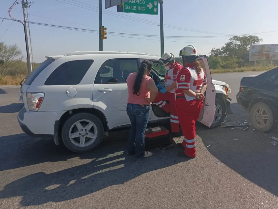 CD. VICTORIA, TAMAULIPAS, 3 DE ENERO DE 2023.- Una mujer lesionada al participar la camioneta en que viajaba en una carambola donde participaron dos unidades más.