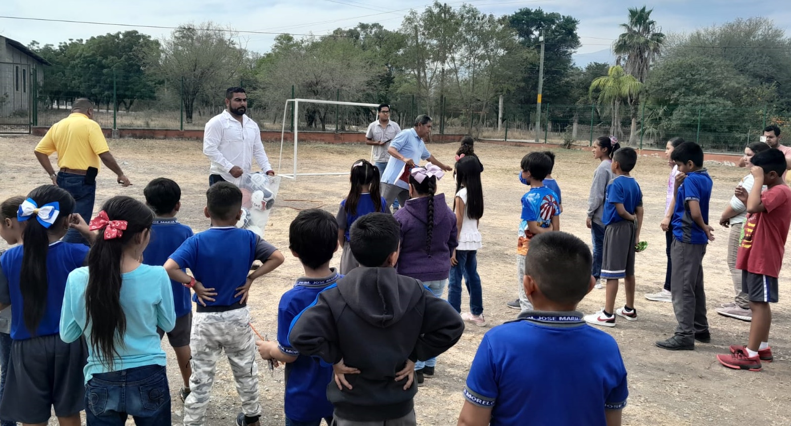 Beneficia Lalo Gattás a Primaria de Caballeros con material deportivo y porterías de fútbol