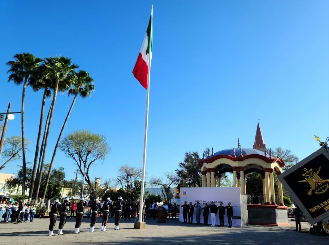 La ceremonia cívica se realizó a través de la Secretaría de Educación, Cultura y Deporte del Municipio en coordinación con el Pentatlón Cuartel de Infantería de Marina, durante un acto celebrado en la plaza principal “Miguel Hidalgo”.