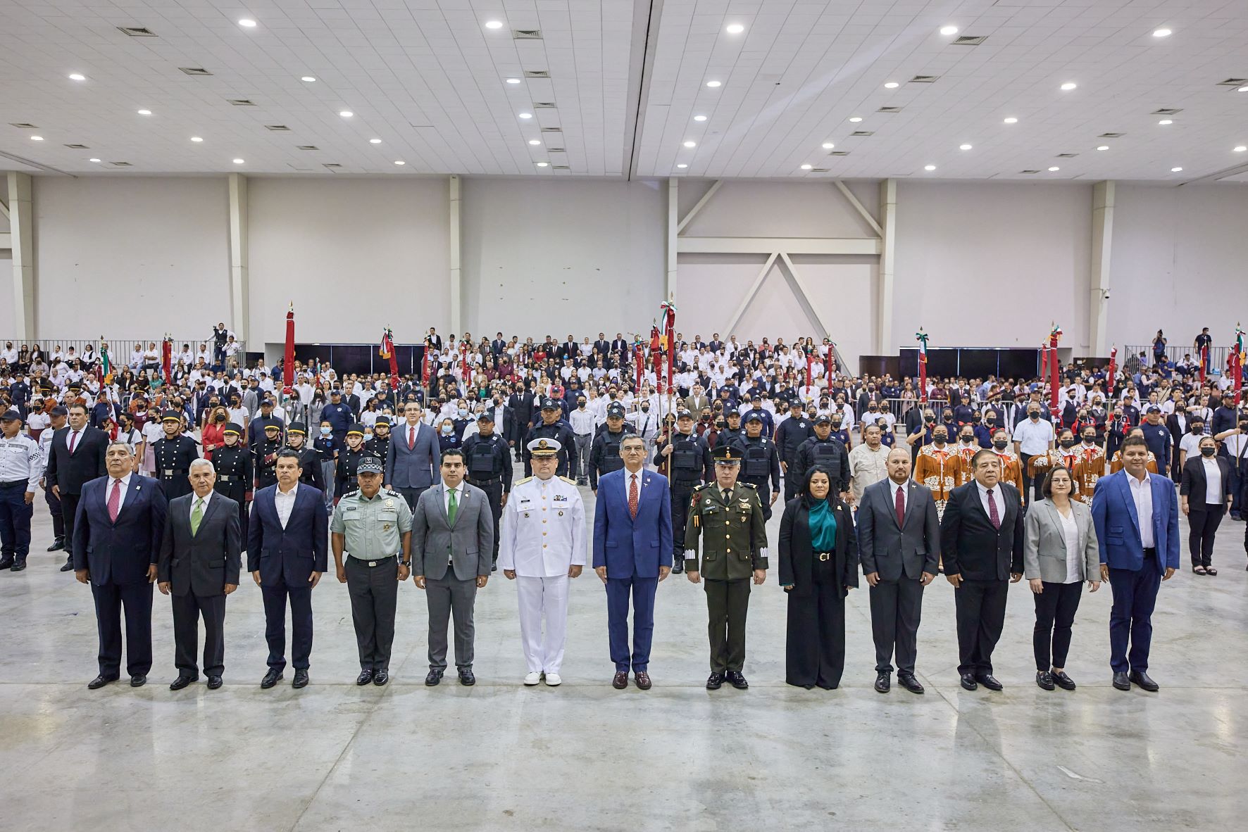 militares y representantes de los tres niveles de gobierno, así como alumnos y padres