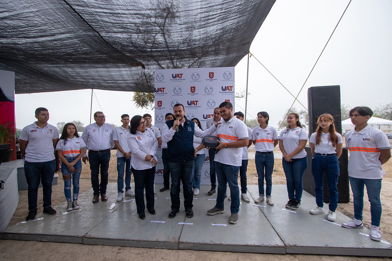 Por su parte, el joven José Adrián Villegas Pérez, fundador de la Brigada de Primeros Auxilios, agradeció su apoyo al rector de la UAT, y comentó que el equipo les permitirá estar listos en caso de alguna contingencia en su plantel escolar.