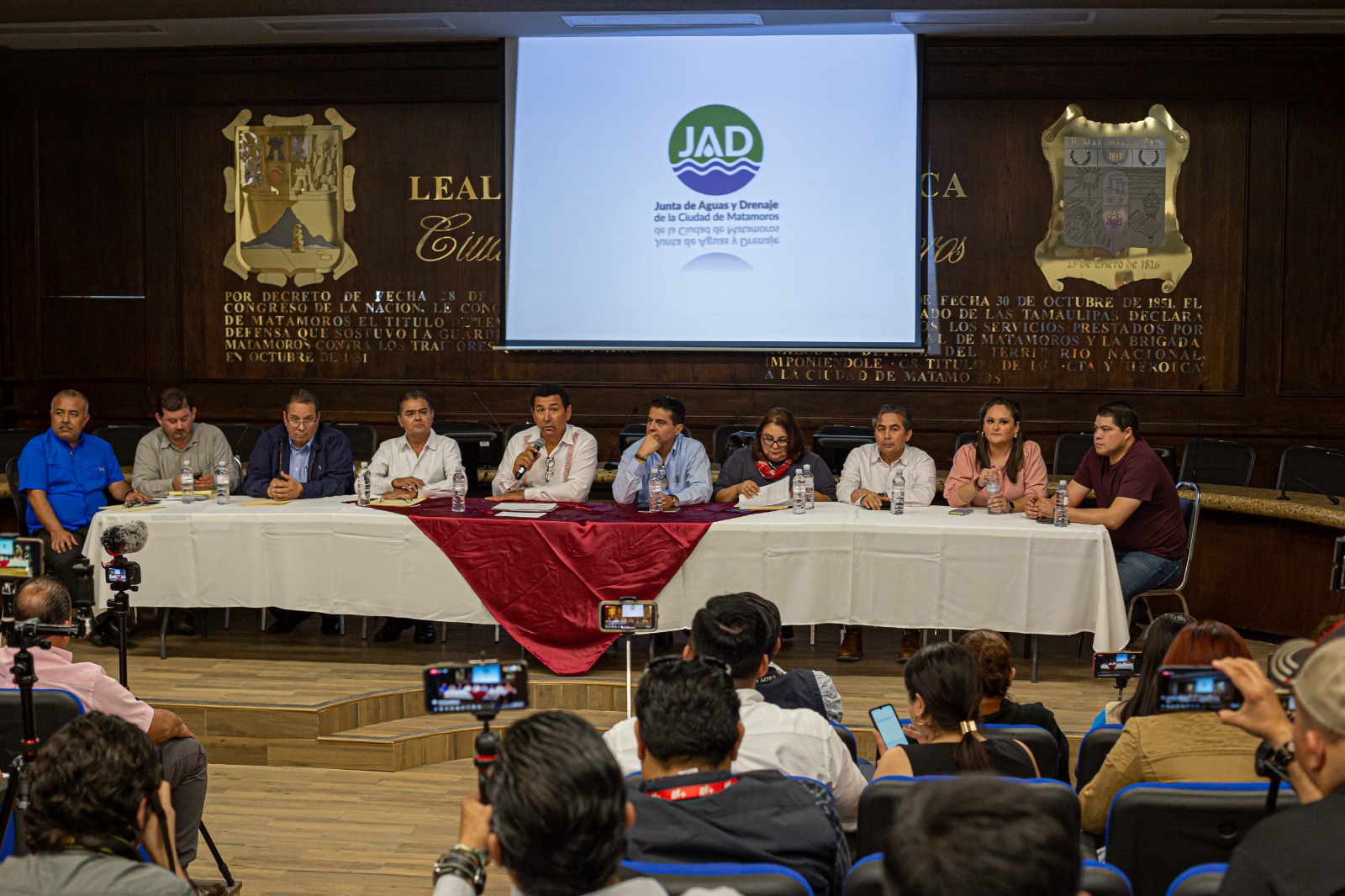 En conferencia de prensa, el Presidente Municipal de Matamoros detalló por medio de una presentación el estado actual de la paramunicipal, destacando que se encuentra totalmente “quebrada” a causa de los malos manejos administrativos, al exceso de personal y a un contrato colectivo de trabajo de los empleados sindicalizados, quienes en nómina, se llevan la mayor parte de los ingresos mensuales que tiene la JAD.