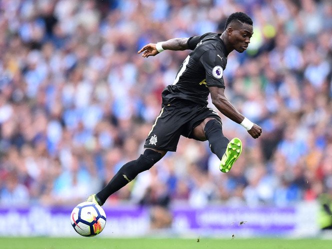 HATAY, TURQUIA, 18 DE FEBRERO DE 2023.-El mediocampista ghanés del Newcastle United, Christian Atsu, patea el balón durante el partido de la Premier League inglesa ante Brighton y Hove Albion un 24 de septiembre de 2017 (AFP)