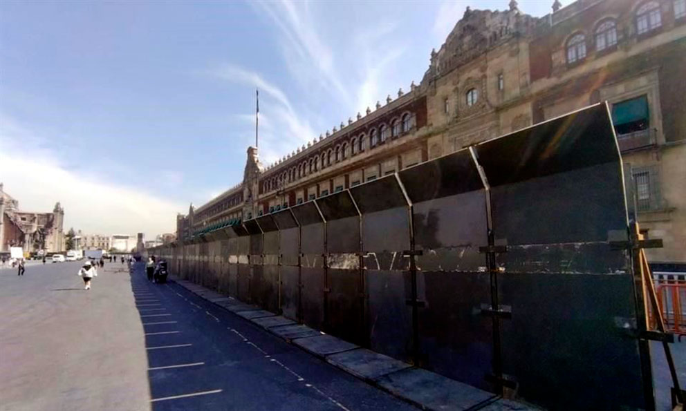 El Presidente Andrés Manuel López Obrador ha defendido que este edificio histórico sea blindado con el argumento de que manifestantes se preparan con marros, sopletes y bombas molotov.