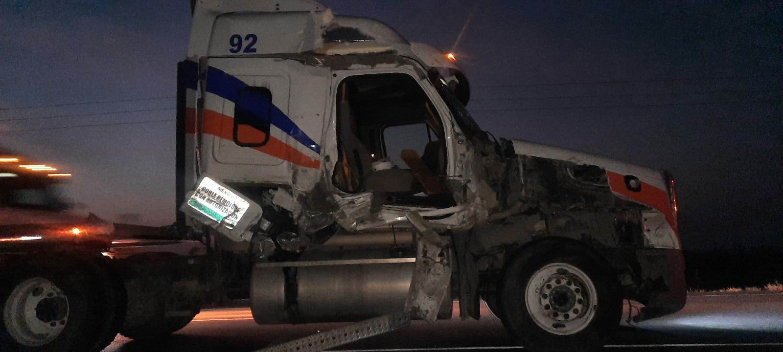 Posteriormente se estrella en la parte trasera de otro tráiler que transportaba tarimas y el cual se