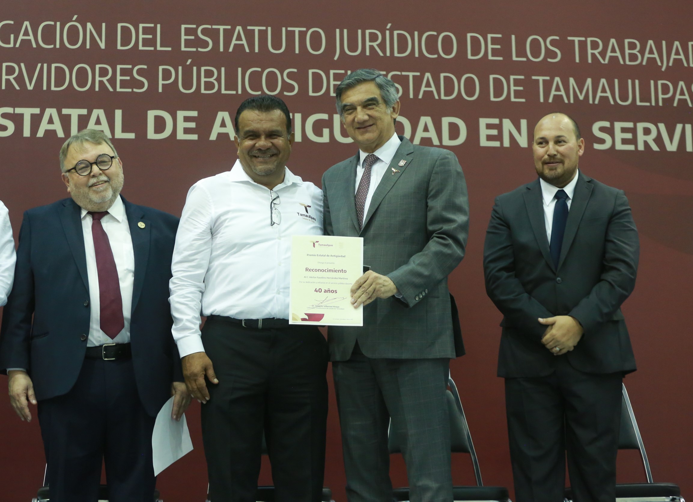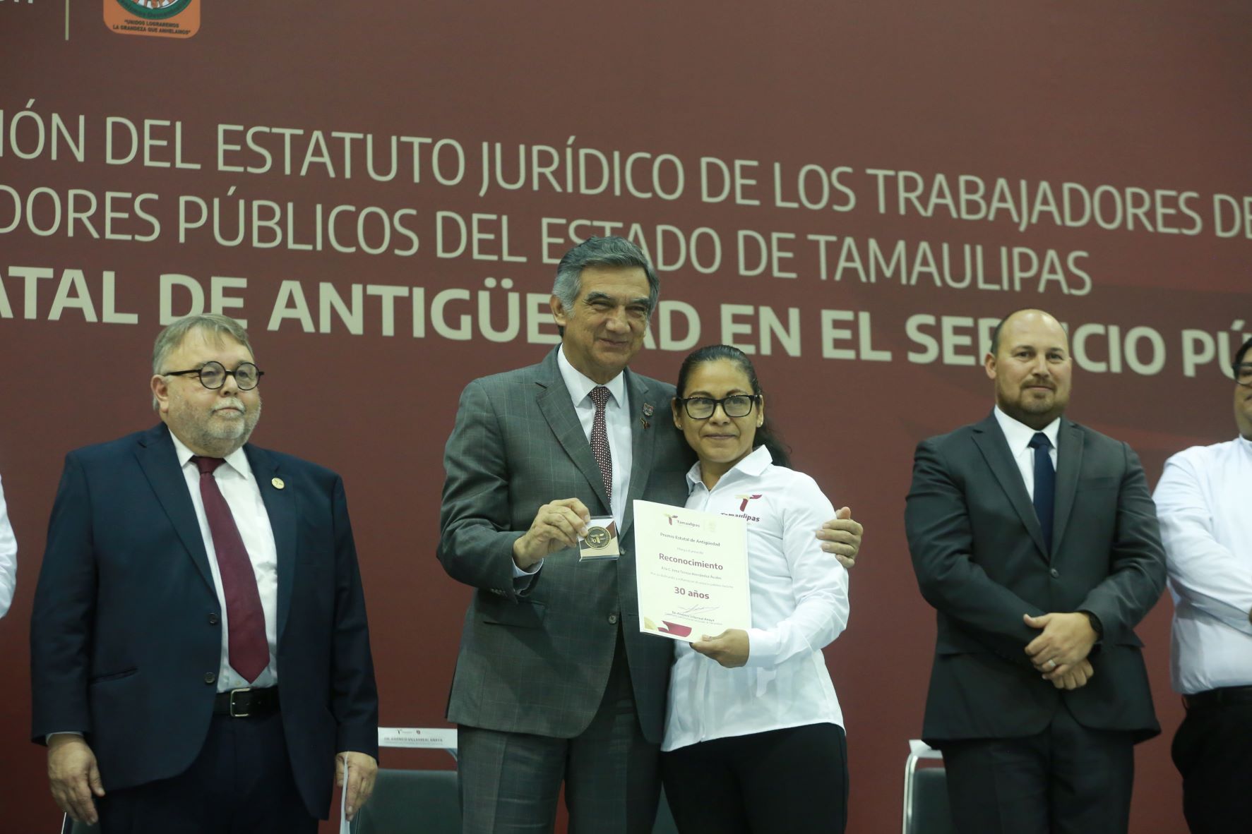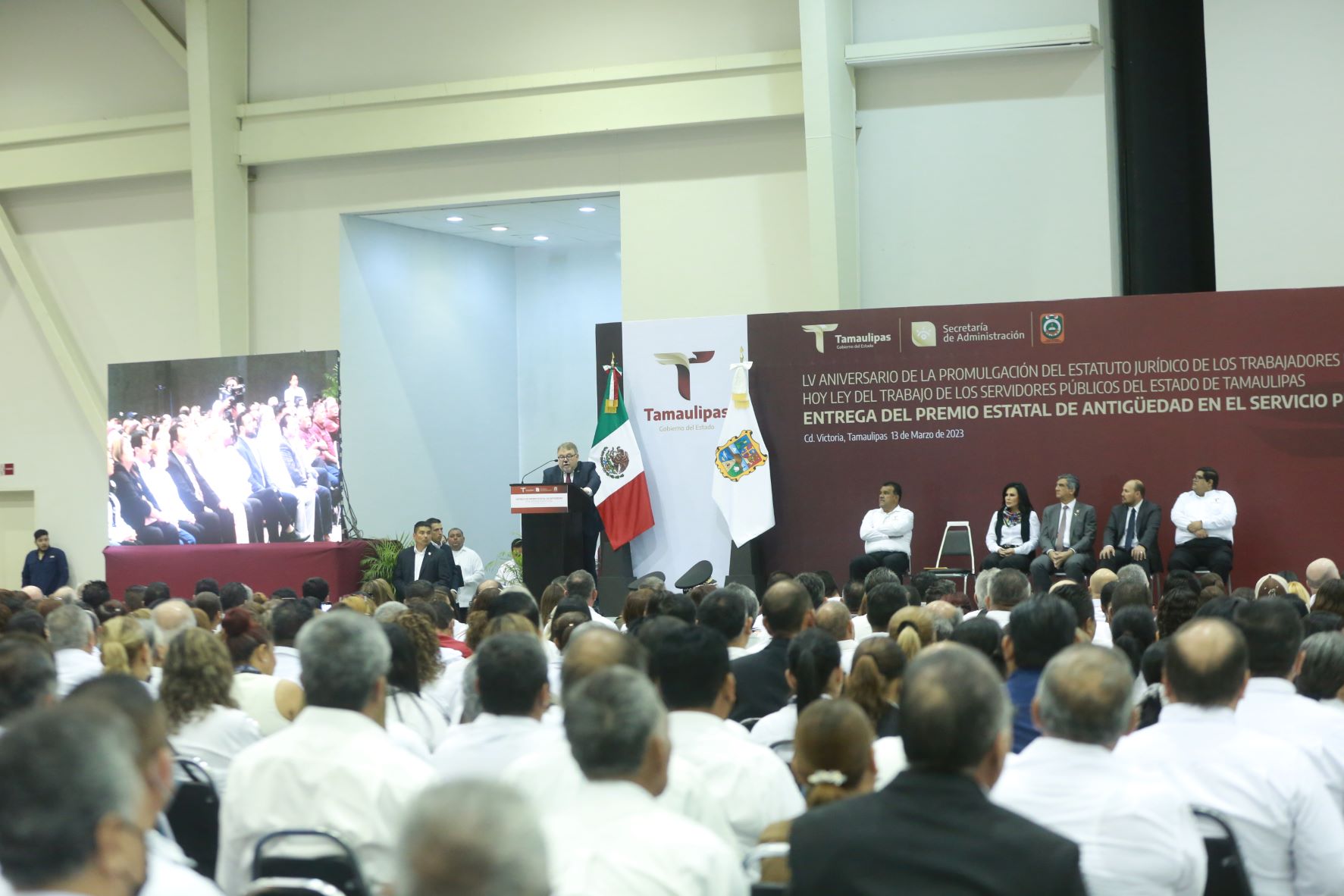 En la entrega del Premio Estatal de Antigüedad en el Servicio Público 2022, que se realizó en el Polyforum Victoria, Villarreal Anaya explicó que se ha realizado una homologación de los niveles más bajos de categoría confianza, extraordinario y contrato, para obtener un único nivel operativo, el 149; en el cual se verán reflejados incrementos desde el 10% hasta el 82%.