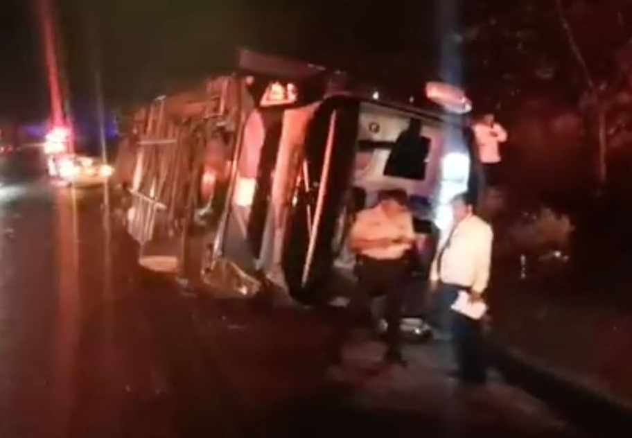 CD. VICTORIA, TAMAULIPAS, 29 DE EMARZO DE 2023.-Doce personas lesionadas entre ellas un bebé fue el saldo de la volcadura de un autobús de pasajeros registrado en el kilómetro Trece de la carretera que conduce de Victoria a Tula en el tramo Rumbo Nuevo.