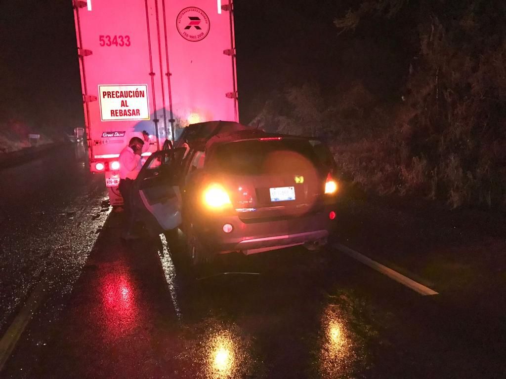 A la altura del kilómetro 12 del citado el tramo carretero la camioneta Saturn se impactó contra la caja cerrada de un tráiler que había detenido su marcha, ya que a unos metros de distancia, sobre los carriles de oriente a poniente, otro tráiler se había impactado contra el talud de la sierra y obstruía la circulación.