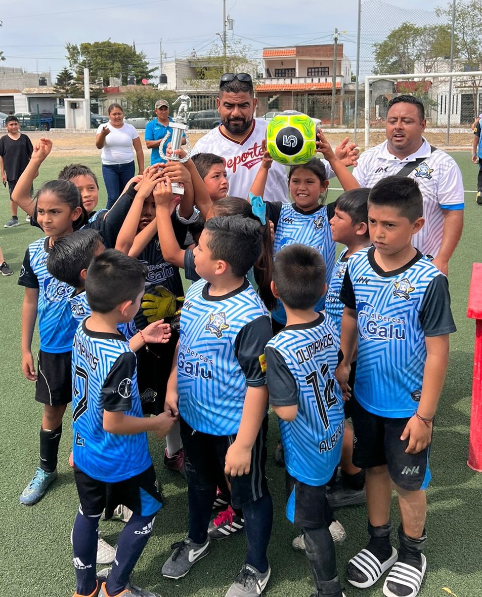 Ciudad Victoria.- Con una participación estimada de 150 niños (as) de la categoría 2015-2016, se desarrolló exitosamente el torneo relámpago de fútbol en el campo sintético del parque recreativo Palomas, cuyos equipos ganadores fueron premiados por parte del Gobierno Municipal de Eduardo Abraham Gattás Báez.