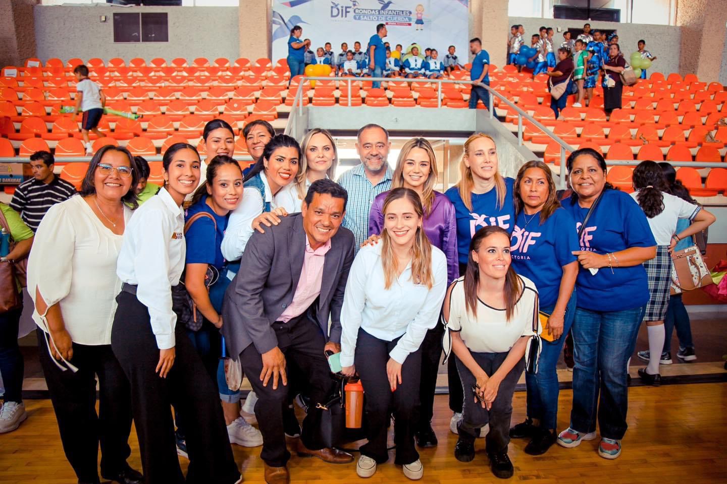 CD. VICTORIA, TAMAULIPAS, 26 DE MARZO DE 2023.- La Sra. Lucy de Gattás presidenta del Sistema DIF Victoria participó en la apertura del concurso regional de rondas infantiles y salto de cuerda organizado en esta ciudad por el Sistema DIF Tamaulipas con la participación de más de 800 niñas y niños de 15 municipios del centro del Estado.