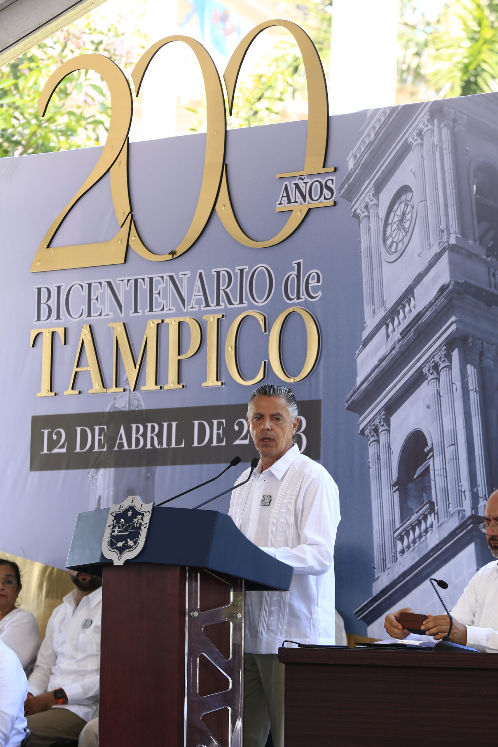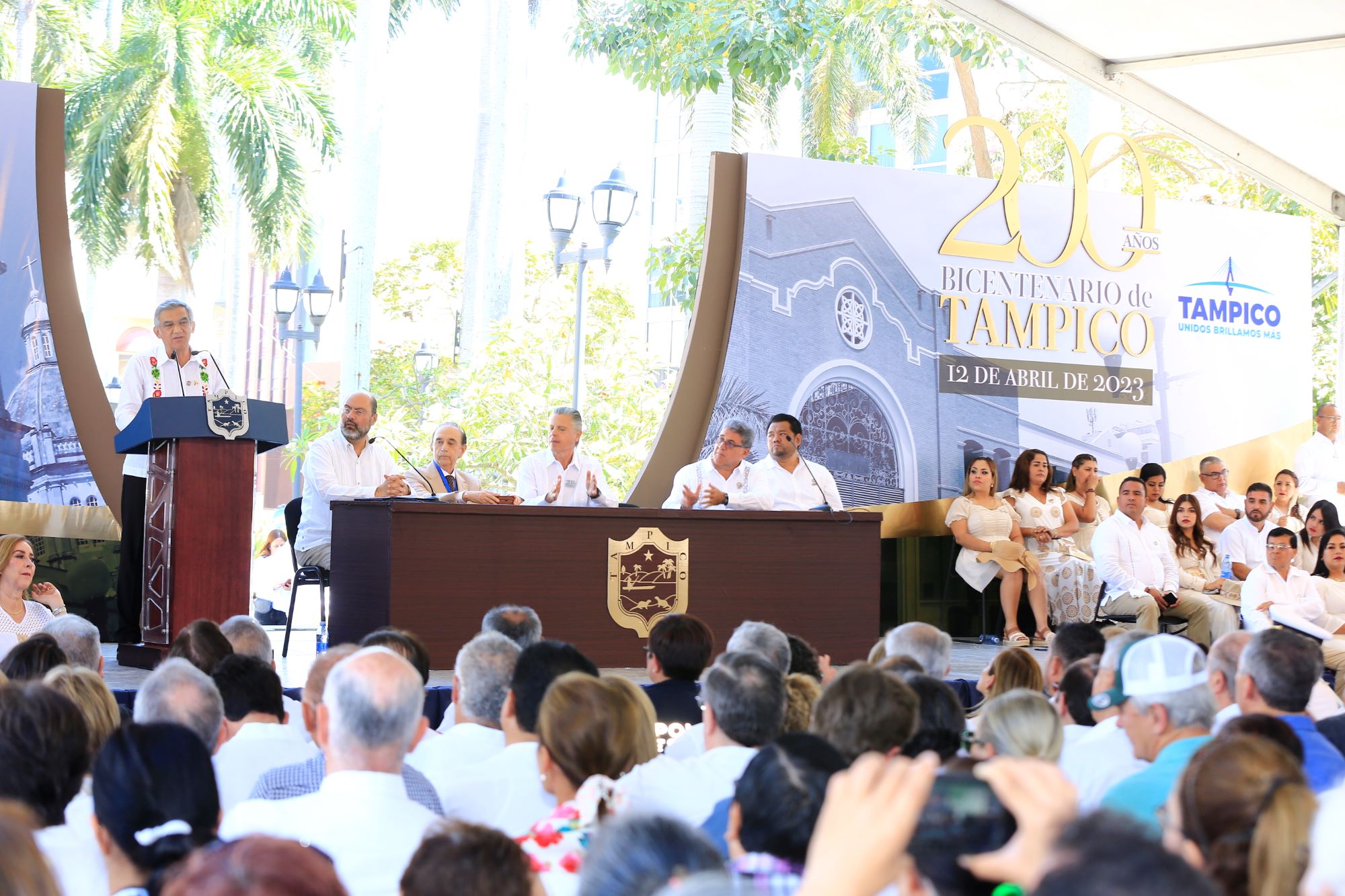 TAMPICO, TAMAULIPAS, 12 DE ABRIL DE 2023.- La celebración del bicentenario de la fundación de Tampico es un momento de trascendental importancia y debe servir para renovar el compromiso