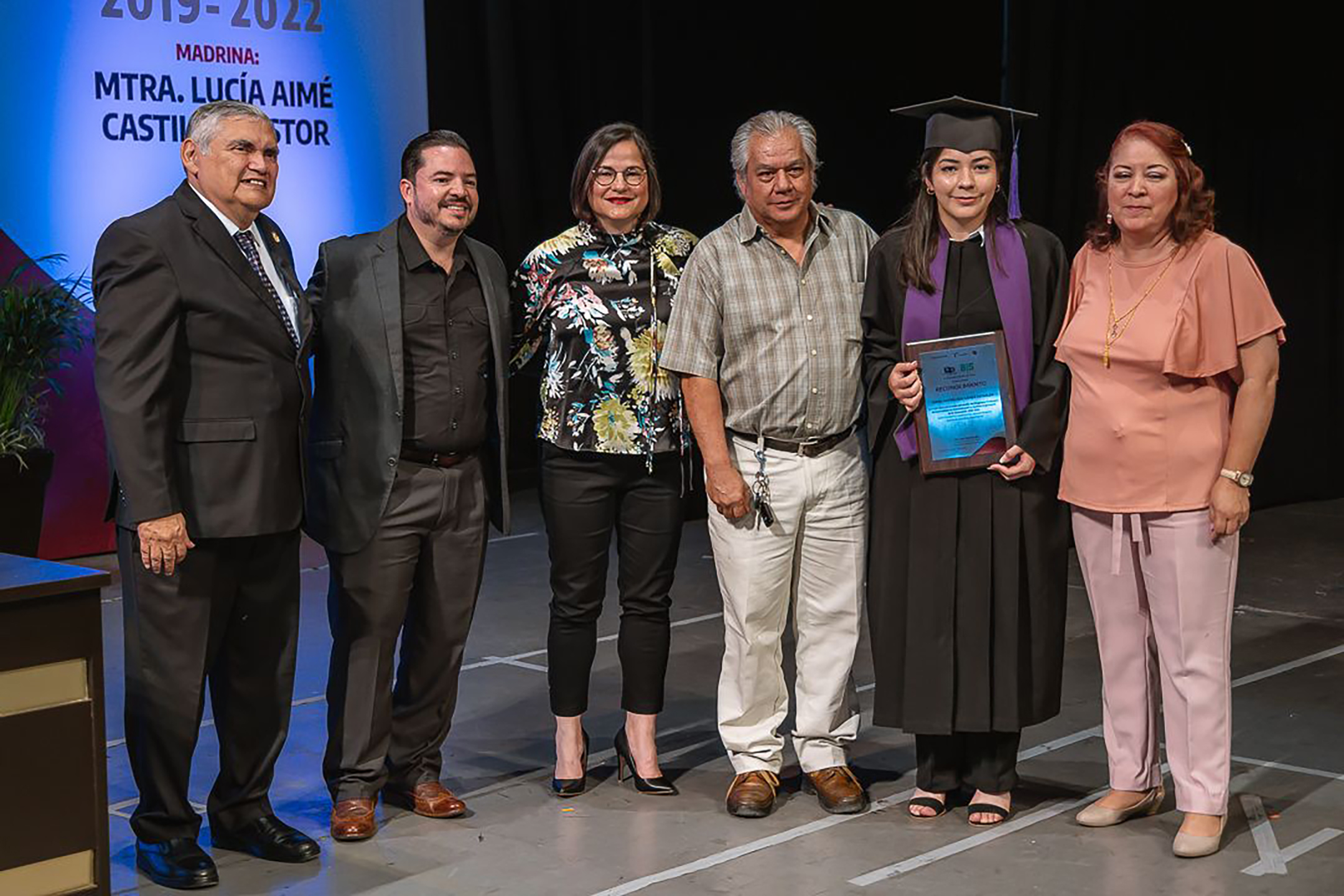 Durante la ceremonia, Lucía Aimé Castillo entregó una medalla de excelencia y reconocimiento a Sonia Miroslava Gámez Morales, de la Licenciatura en Administración y Gestión Empresarial, por haber obtenido el mejor promedio de su generación con 98.8.