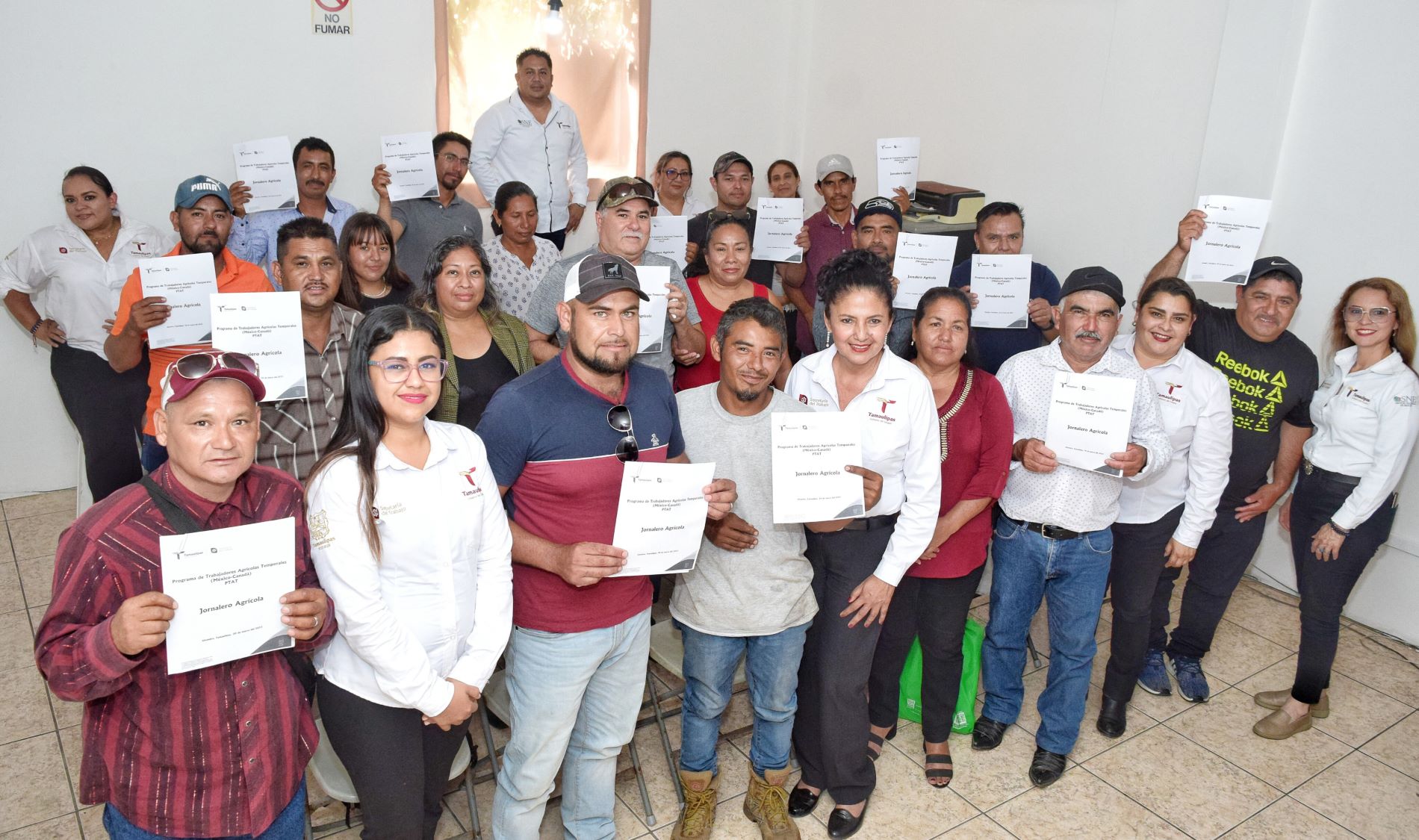 CD. VICTORIA, TAMAULIPAS, 3 DE ABRIL DE 2023.- Cumpliendo con el propósito del gobierno humanista de Américo Villarreal Anaya, a través del Servicio Nacional del Empleo de la Secretaría del Trabajo, 15 jornaleros agrícolas firmaron su contrato para trabajar en Canadá, de forma