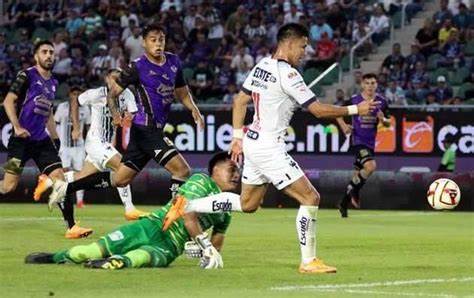 MAZATLAN, SINALOA, 21 DE ABRIL DE 2023..– El primer aviso fue por parte de la visita, a los 10 minutos de juego, Alfonso González cabeceó pero su intento se fue desviado, los albiazules hicieron daño a los 26 minutos de partido, cuando Omar Govea tomó el balón en el mediocampo, levantó la vista y sacó un pase elevado hacia el área, donde apareció Maximiliano Meza ante el intento de achique del guardameta cañonero Ricardo Gutiérrez, el argentino dribló al portero y antes de llegar a la línea de fondo, mandó a guardar el balón a la portería, para abrir el marcador.