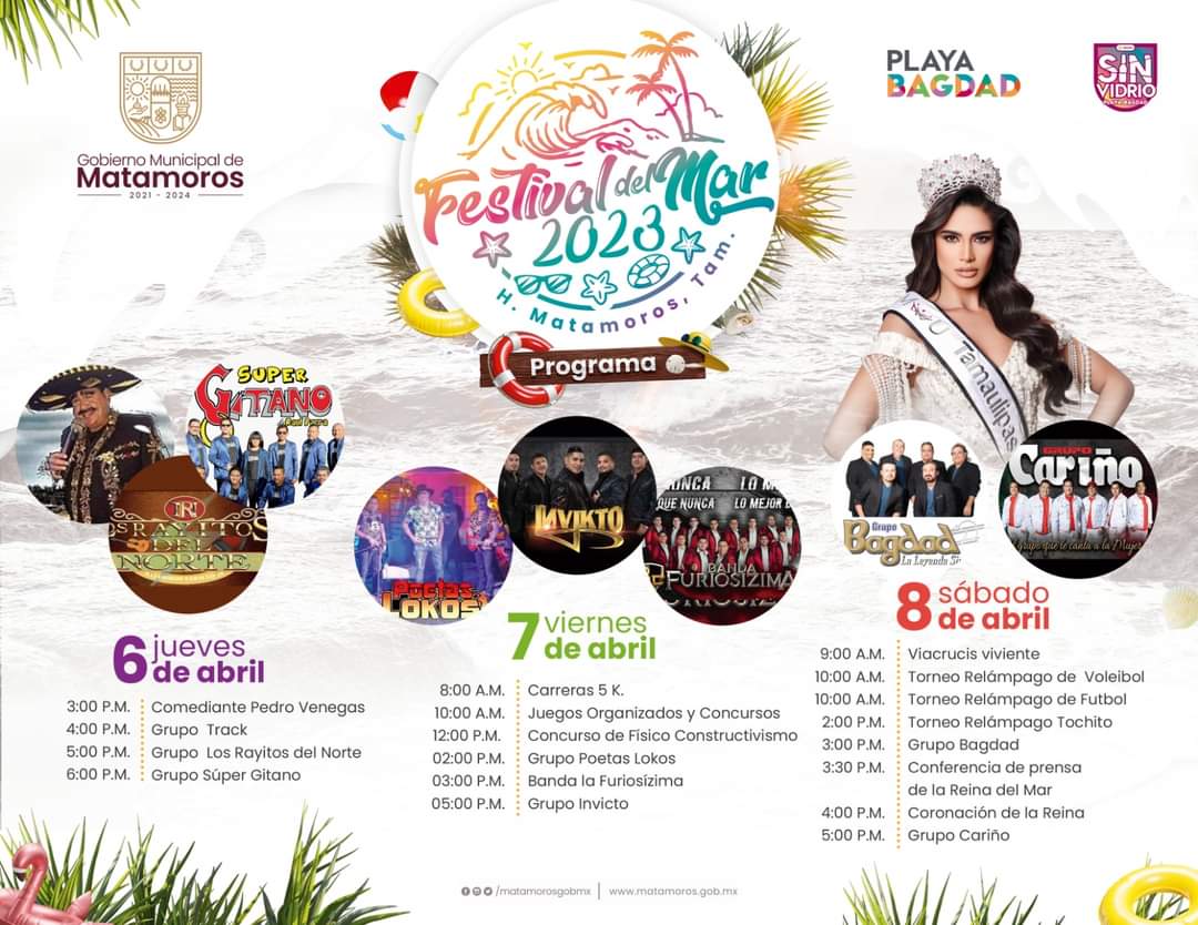 El Gobierno de Matamoros ha dispuesto un programa artístico, deportivo y cultural para los días jueves, viernes y sábado, que incluyen bailes populares y la coronación de la reina del Festival del Mar 2023, Scarlett Mercado.