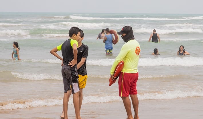 CD. MADERO, TAMAULIPAS, 8 DE ABRIL DE 2023.- Autoridades Municipales exhortan a paseantes que acuden al máximo paseo turístico de playa Miramar a que atiendan las recomendaciones de los guardavidas y respetar el semáforo de banderas que indica el estado del oleaje y las condiciones que se encuentra el mar al momento.