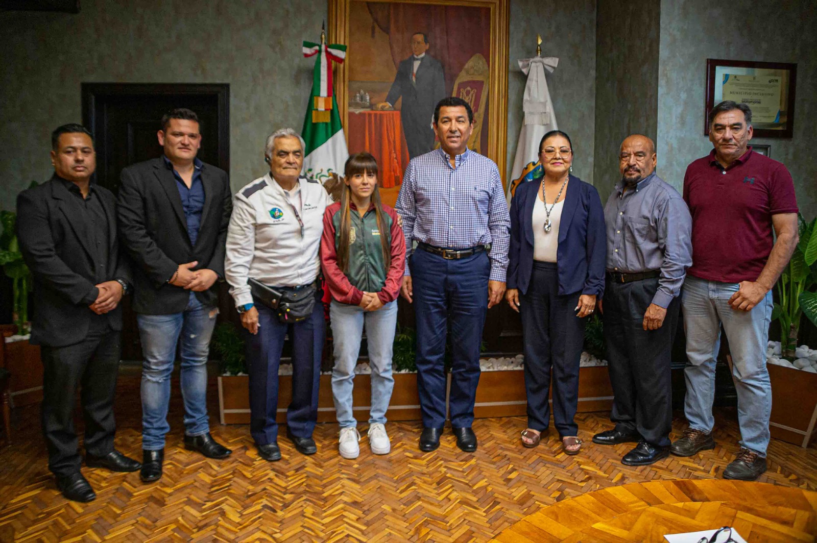 La reunión entre el Presidente Municipal y el Presidente de la citada Federación también tuvo como propósito establecer acuerdos para seguir fortaleciendo el deporte en esta frontera, en donde se tiene un avance importante y ejemplo de ello es la joven Cassandra Michell Vélez Arriaga, quien es campeona mundial en Halterofilia.