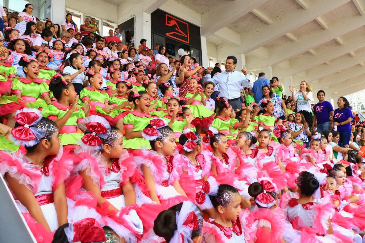Asisten Lucy y Lalo a concurso estatal de rondas infantiles en el estadio