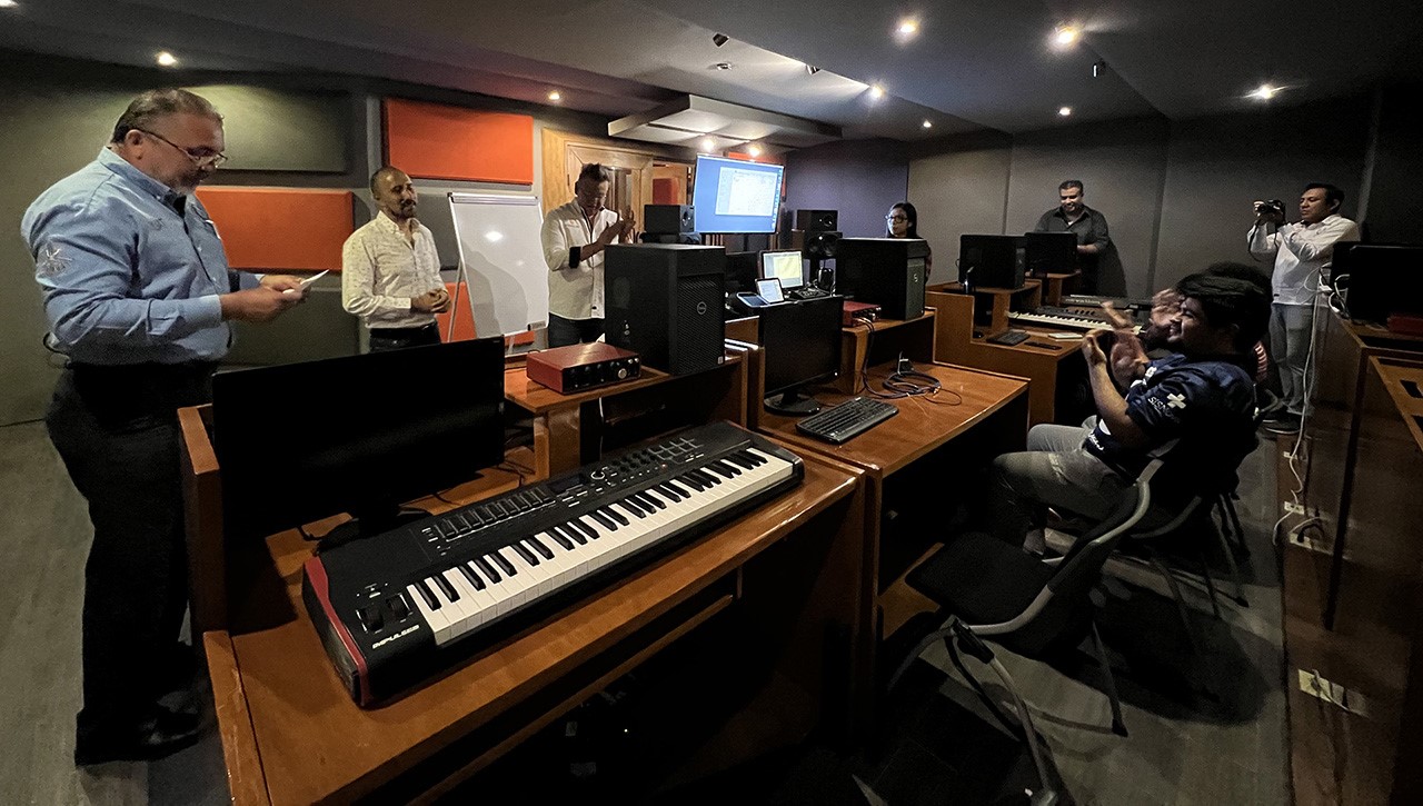 TAMPICO, TAMAULIPAS, 20 DE MAYO DE 2023.- Con el propósito de complementar la formación académica de la comunidad estudiantil de la Universidad Autónoma de Tamaulipas (UAT) mediante actividades acordes a su currículo y proyectos educativos de cada nivel, la Facultad de Música y Artes de Tampico llevó a cabo una serie de talleres de dirección y producción musical impartidos
