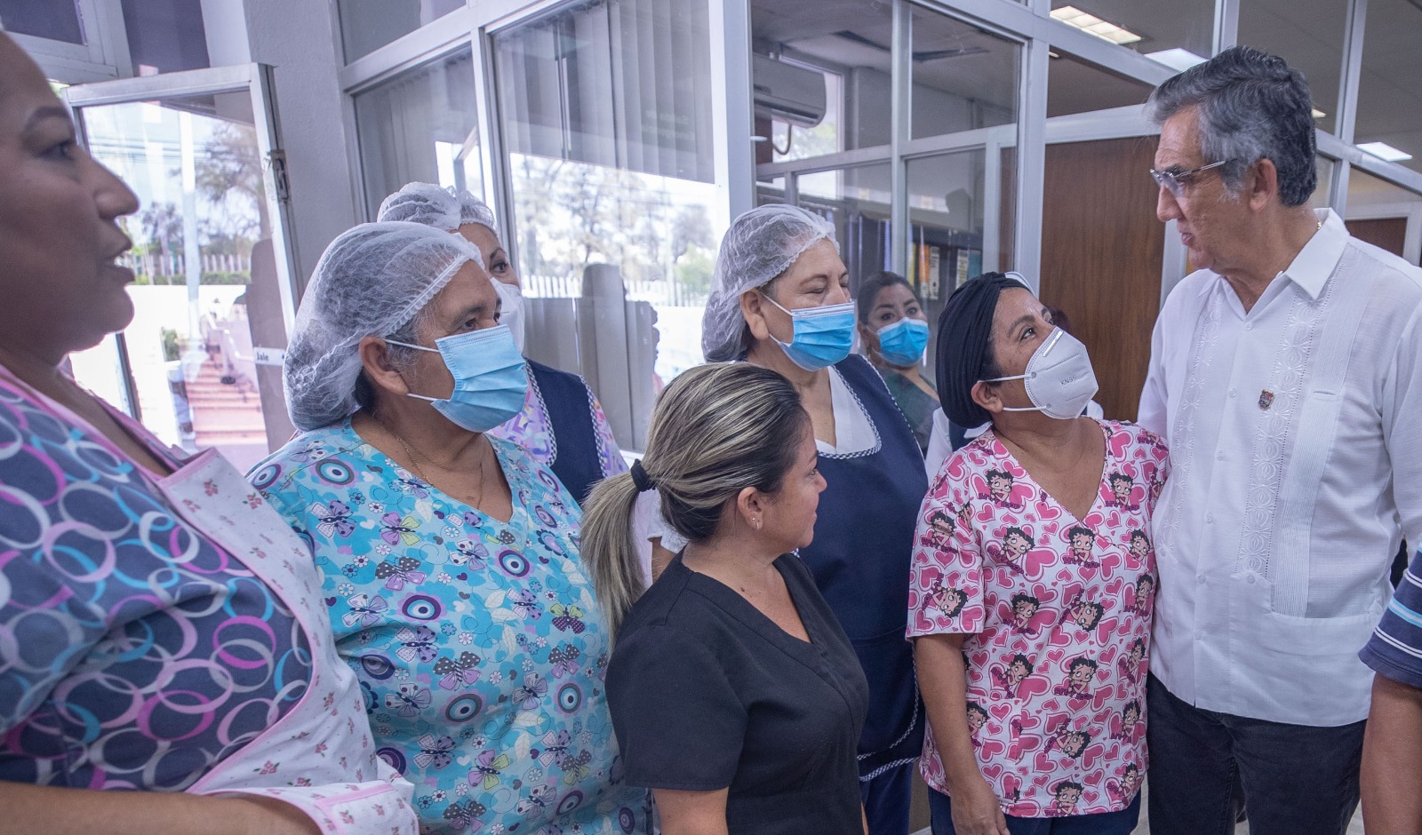 En su recorrido, el gobernador se encontró a cada paso, con enfermeras y trabajadores, todos amigos suyos, después de haberse desempeñado como médico cardiólogo en este hospital y con todos ellos platicó y recordó sus buenos momentos en su desempeño profesional y estuvo al pendiente de las necesidades que le plantearon.