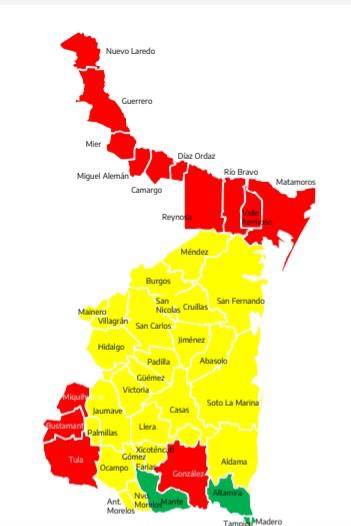 En esta zona, solamente Altamira, Madero, Mante y Tampico seguirán en verde, mientras