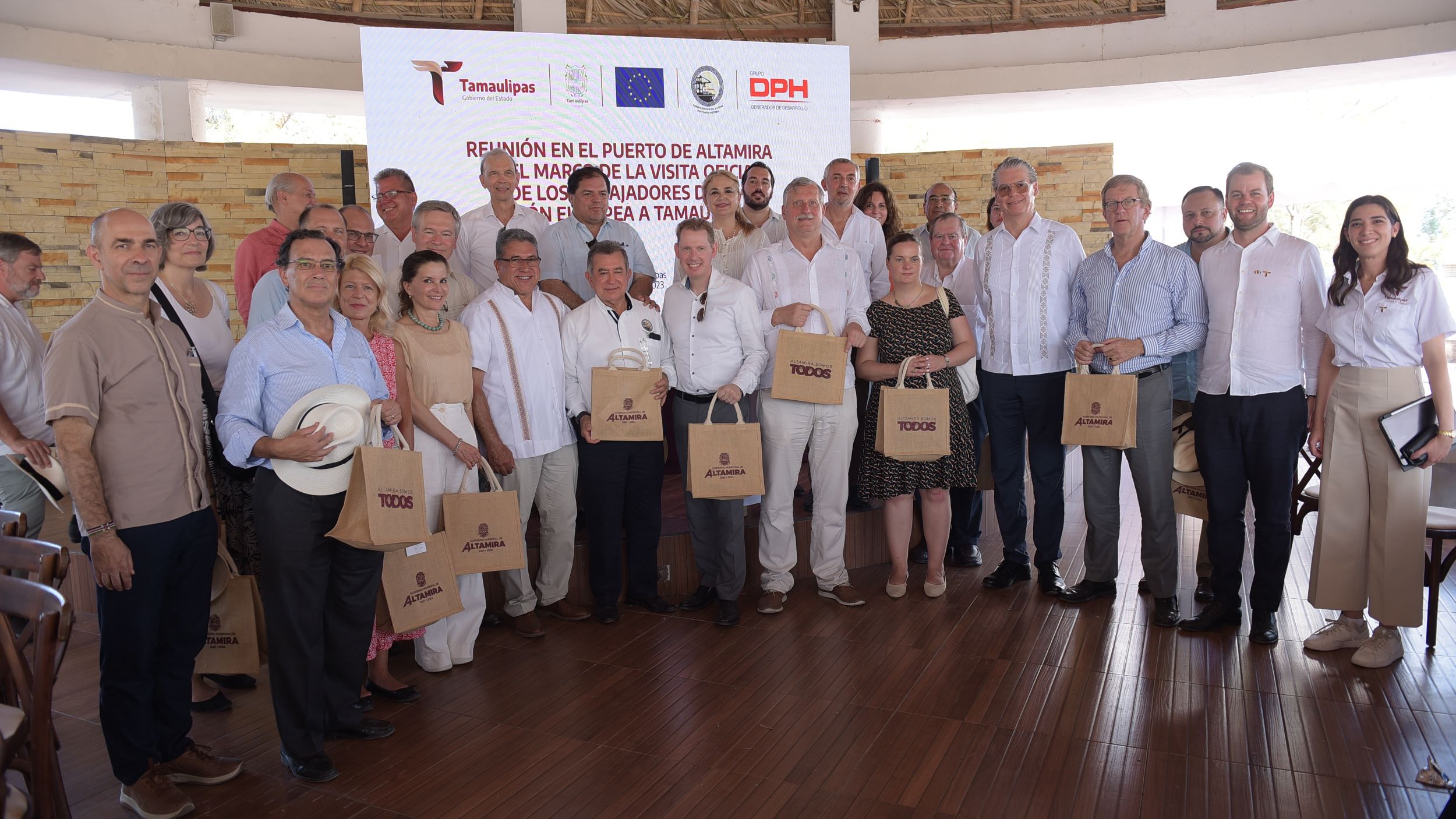 ALTAMIRA, TAMAULIPAS, 23 DE JUNIO DE 2023.- Las y los embajadores de la Unión Europea llegaron este viernes al sur de Tamaulipas iniciando con una visita al municipio de Altamira en donde conocieron la extraordinaria capacidad logística de este puerto industrial y las