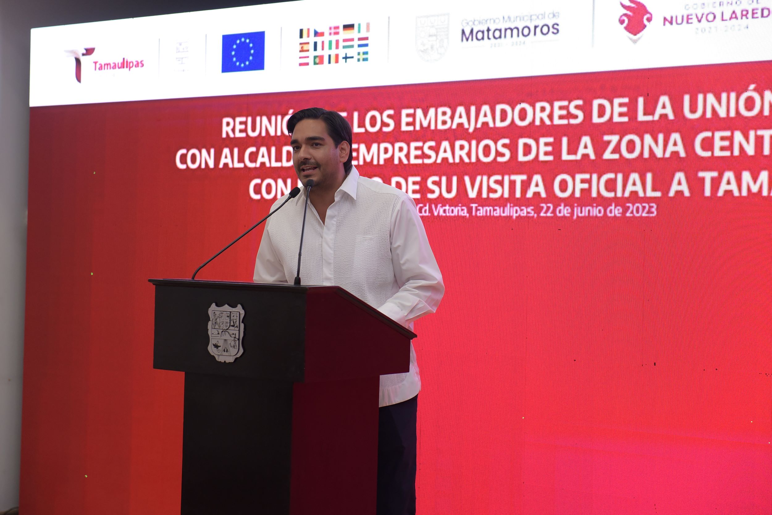 Luego de agradecer a la presidenta y a los presidentes municipales, el embajador de la Unión Europea confió en que próximamente, ya sea en grupo o individualmente, las y los embajadores europeos podrán a conocer la región norte de Tamaulipas.