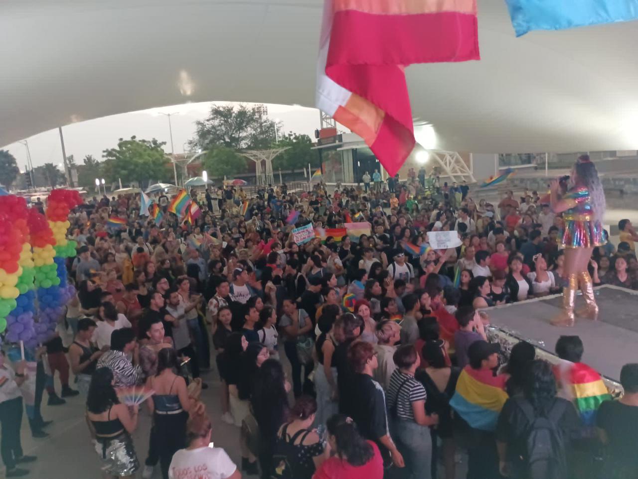 Con cientos de participantes miembros de la comunidad LGBTIQ+ (lesbianas, gays, bisexuales, transgénero, intersexuales y queer) marcharon por algunos momentos bajo la lluvia en un recorrido desde el Paseo Méndez en el 17 Rosales hasta llegar al Patinadero de la Unidad Deportiva Adolfo Ruiz Cortines que se encuentra en el crucero del 16 Carrera Torres.