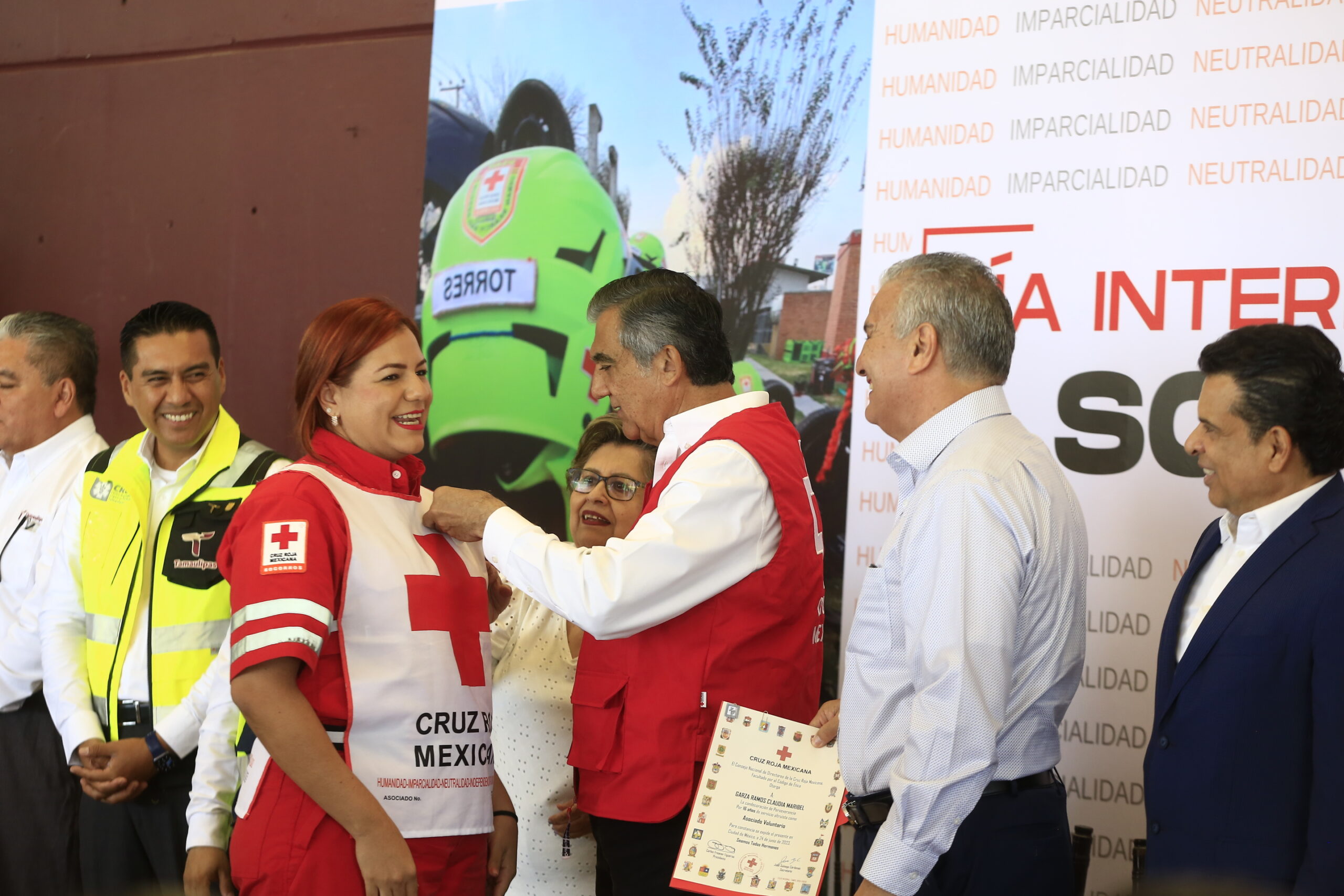 De igual manera entregó cuatro medallas por 15 años de servicio a los socorristas Silvia Marina Rodríguez Ramos, Priscila Mejía Jiménez, Claudia Maribel Garza Ramos y Luis Edén Guadalupe Villafaña Torres.