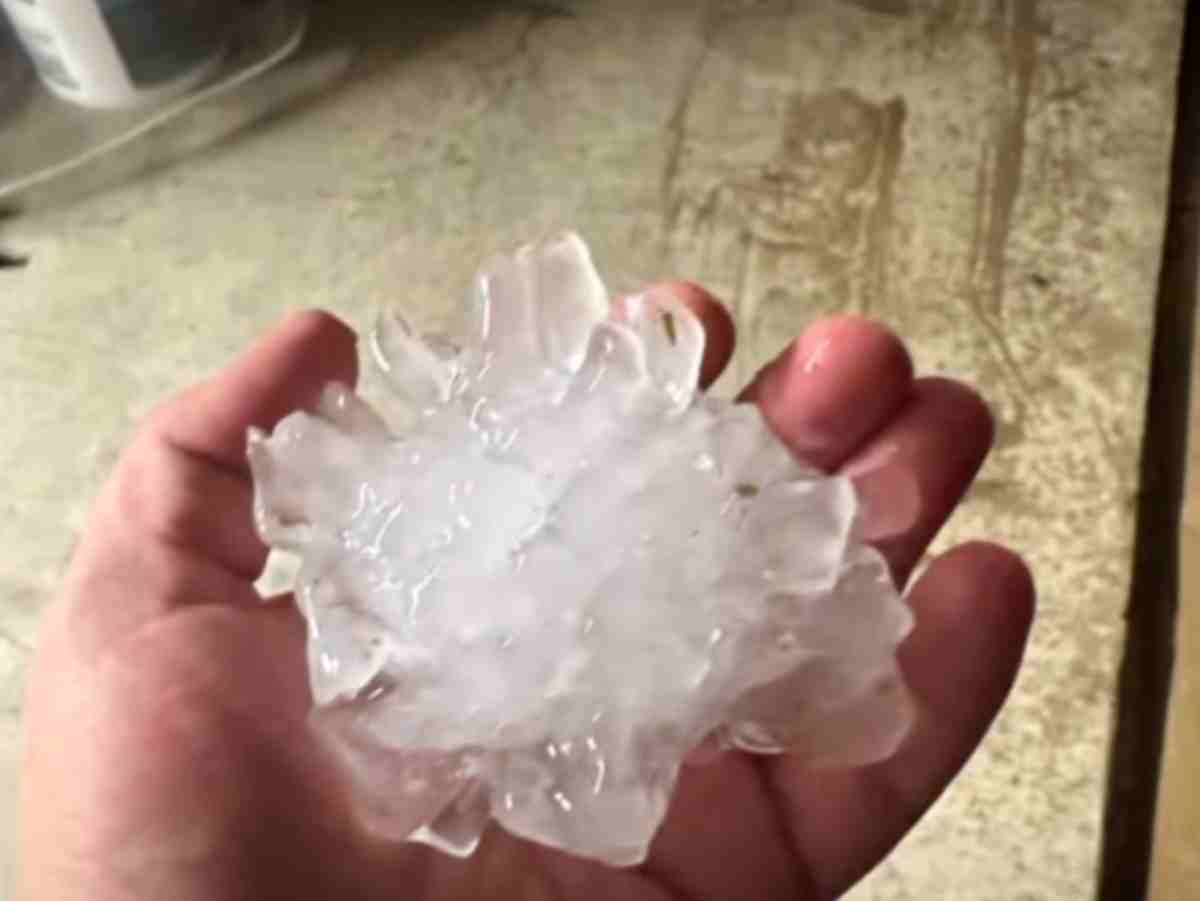 En Texas no estuvieron muy alejados de esto, y es que el rastreador de tormentas Zachary Hall, mostró a sus seguidores de Facebook una auténtica pelota de hielo caída desde el cielo cerca de Sanger.