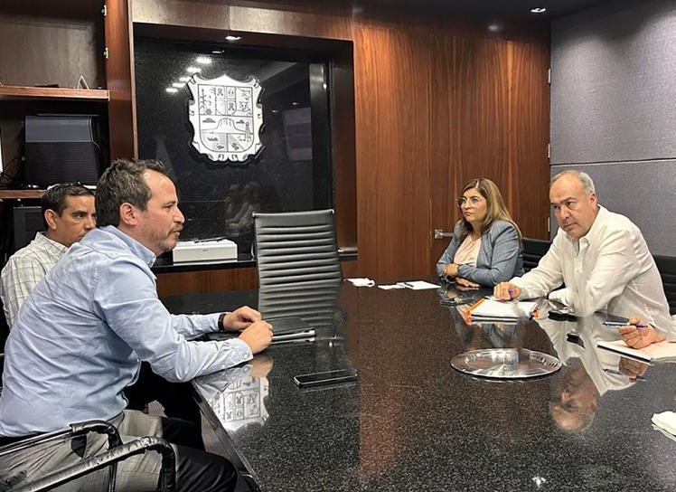 La secretaria de Desarrollo Urbano y Medio Ambiente, Karina Lizeth Saldívar Lartigue y el jefe de asesores del Gobierno del Estado, Alejandro Rábago Hernández, se reunieron con el director de Relaciones Públicas e Institucionales, Alberto Burnell y Director Comercial Noreste, Adrián Galván González.