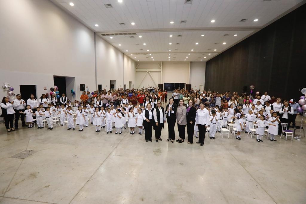 Además, ahí mismo, 65 alumnas y alumnos de nivel preescolar recibieron su certificado