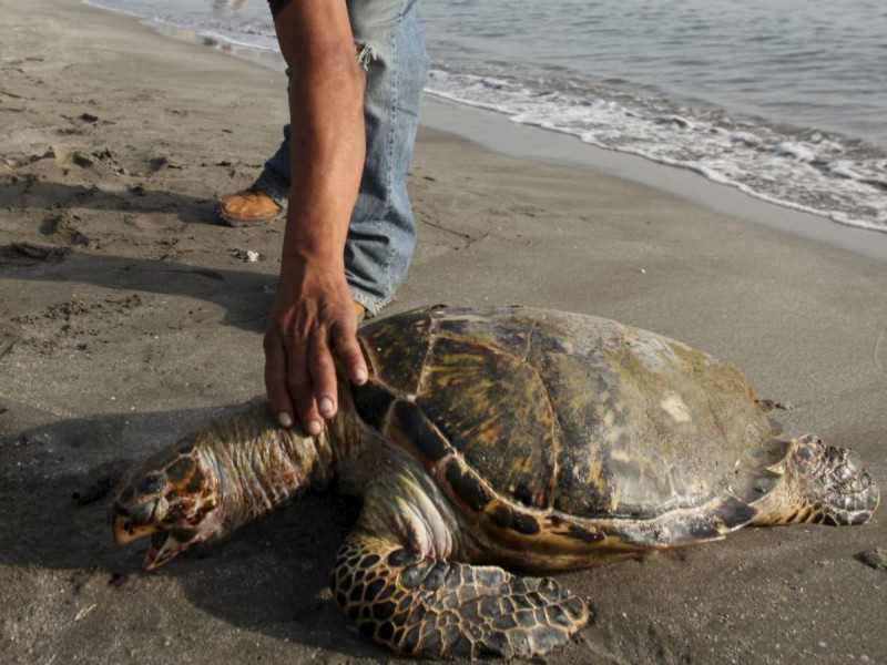 Habitantes de Agua Dulce, Veracruz, denunciaron la mortandad de tortugas carey y peces de colores que aparecieron en el litoral de las playas de Tonalá y Las Palmitas.
