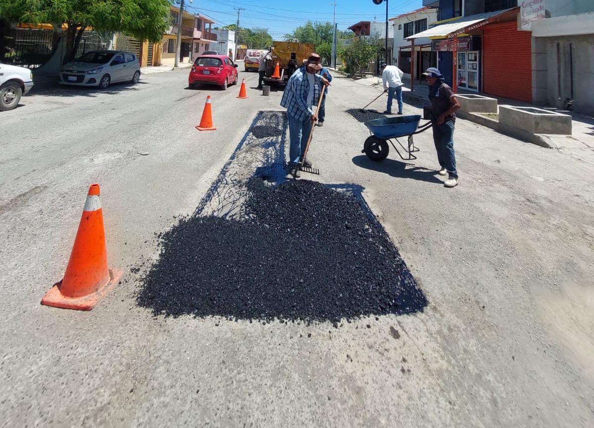 Dando continuidad a los trabajos de bacheo se trabajó en el corazón de la ciudad en la calle Hidalgo esquina con Porfirio Díaz y en calle Manuel González, entre Vicente Guerrero y Nicolás Bravo.